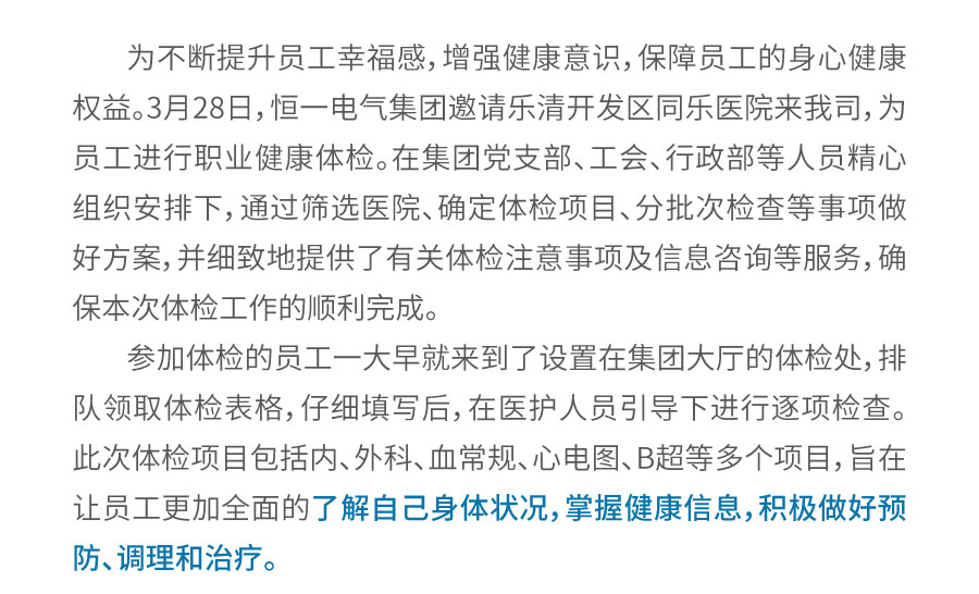 关爱员工,守护健康 恒一2024年员工健康体检活动